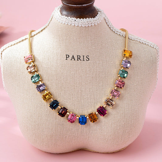 Rainbow Emerald-Cut Gemstone Statement Necklace