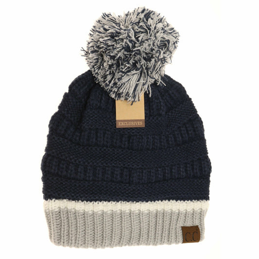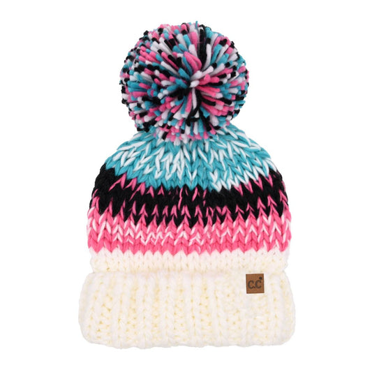 C.C Multi Color Chunky Yarn C.C Pom Beanie