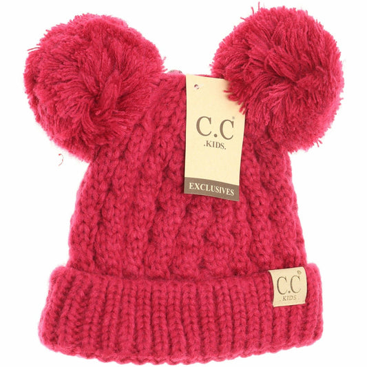 Kids Solid Double Pom CC Beanies