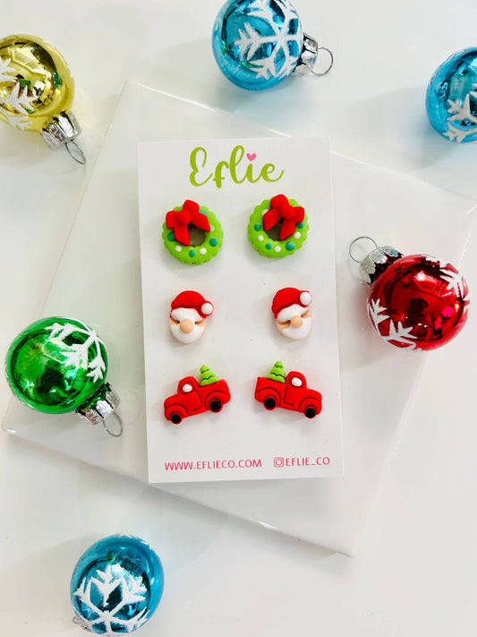 Christmas Santa, Wreaths & Tree Studs Set
