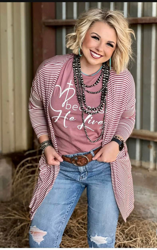 Mauve Striped Mid-Length Cardigan