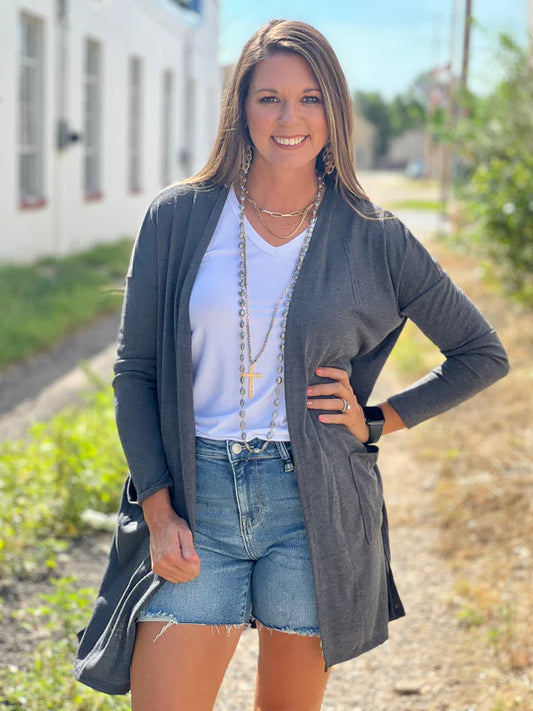 Grey Mid-Length Cardigan
