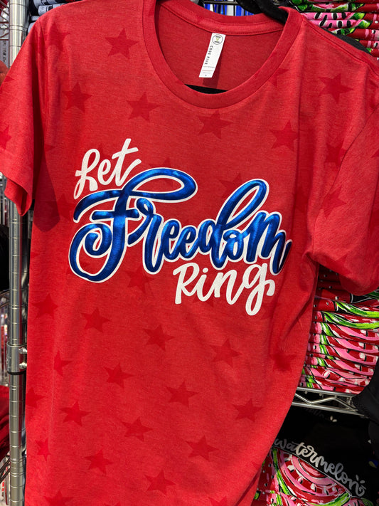 Let Freedom Ring With Blue Metallic Puff Tee