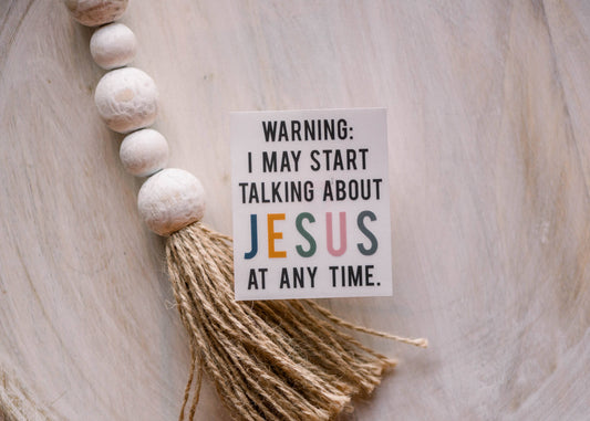Warning: I May Start Talking About Jesus Clear Vinyl Sticker