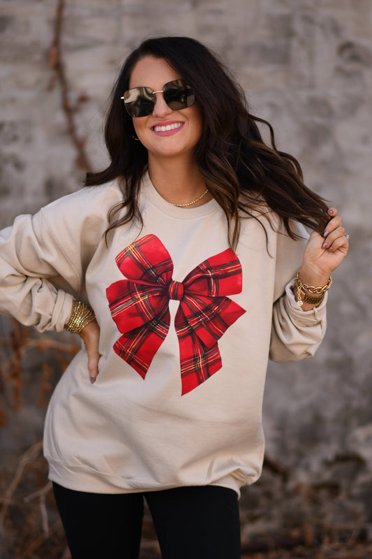 Plaid Holiday Bow Crewneck Sweatshirt