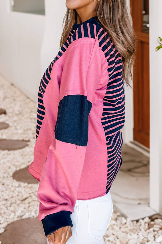 Red & White Stripe Drop Shoulder Baggy Sweatshirt