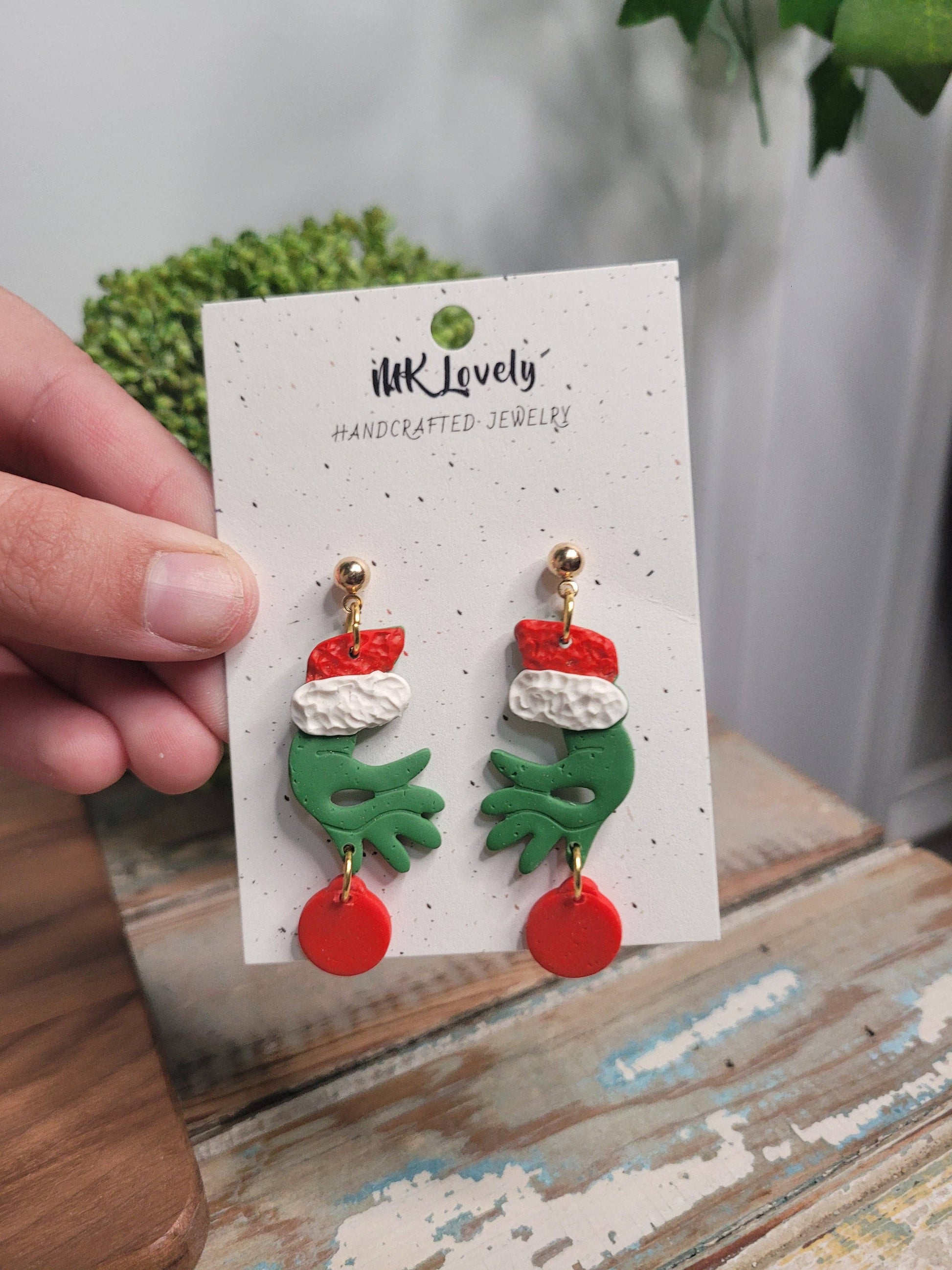 Our Grinch Ornament Earrings are a playful addition to your holiday wardrobe. These dangle earrings encapsulate the festive spirit with their vibrant colors and unique design. Our earrings are not just accessories, but a testament to our dedication to design and craftsmanship. Enjoy the holidays in style!