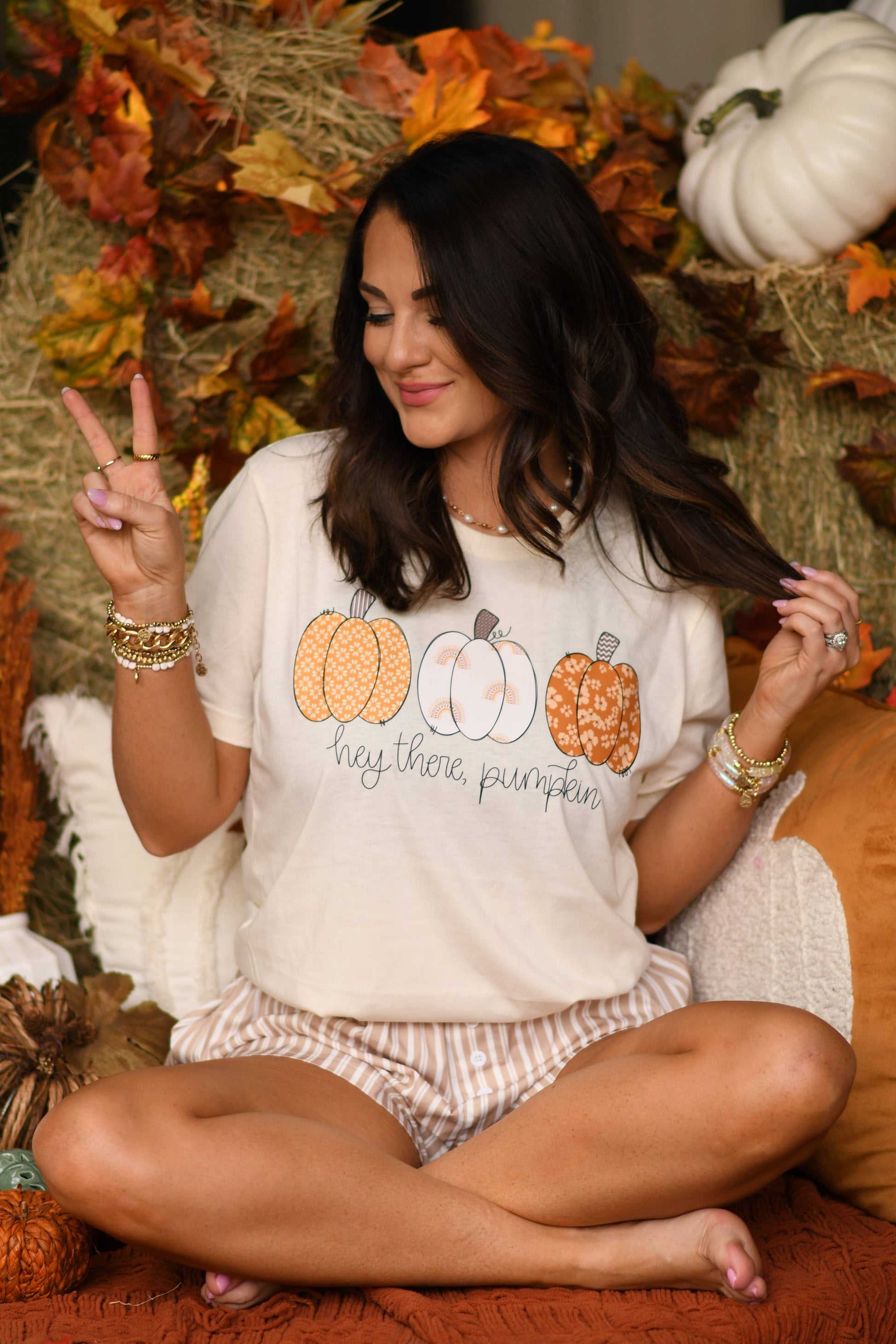 3 adorable pumpkins on a Bella Canvas unisex soft tee. Perfect for layering!