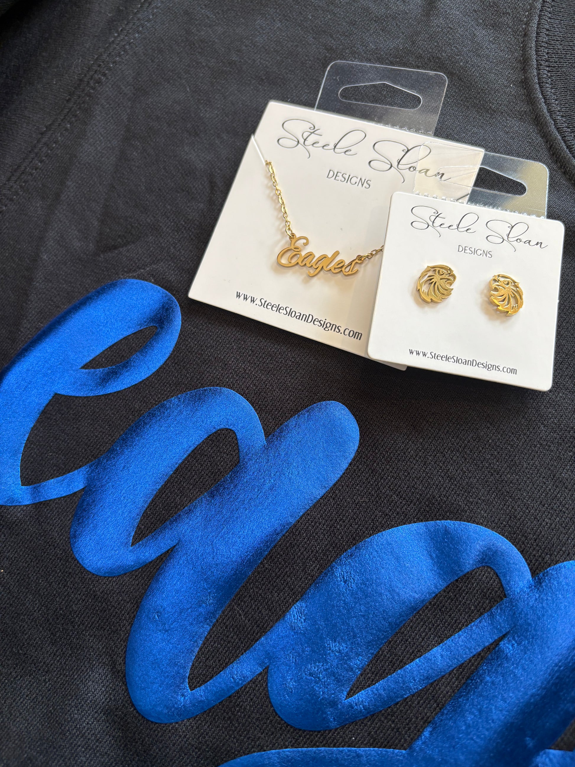 These new custom sweatshirts are AMAZING!! We are so in love with this new royal blue metallic puff and it looks even better in person!