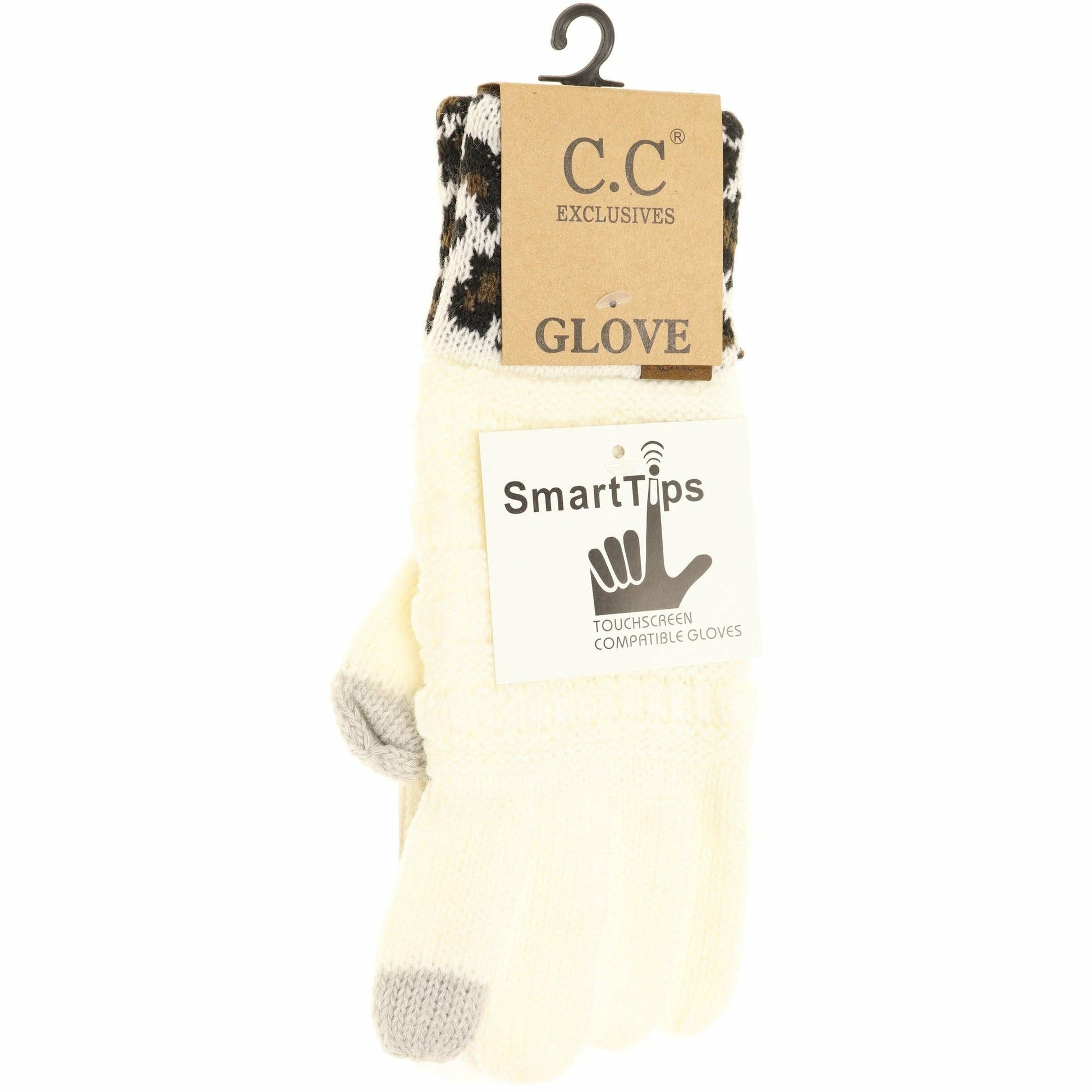 Solid Cable Knit Leopard Cuff CC Women's Gloves